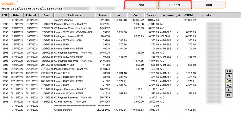 4: The transactions will display in a form: